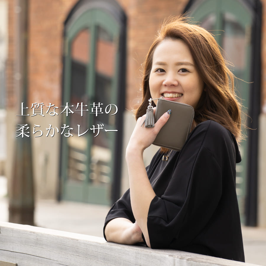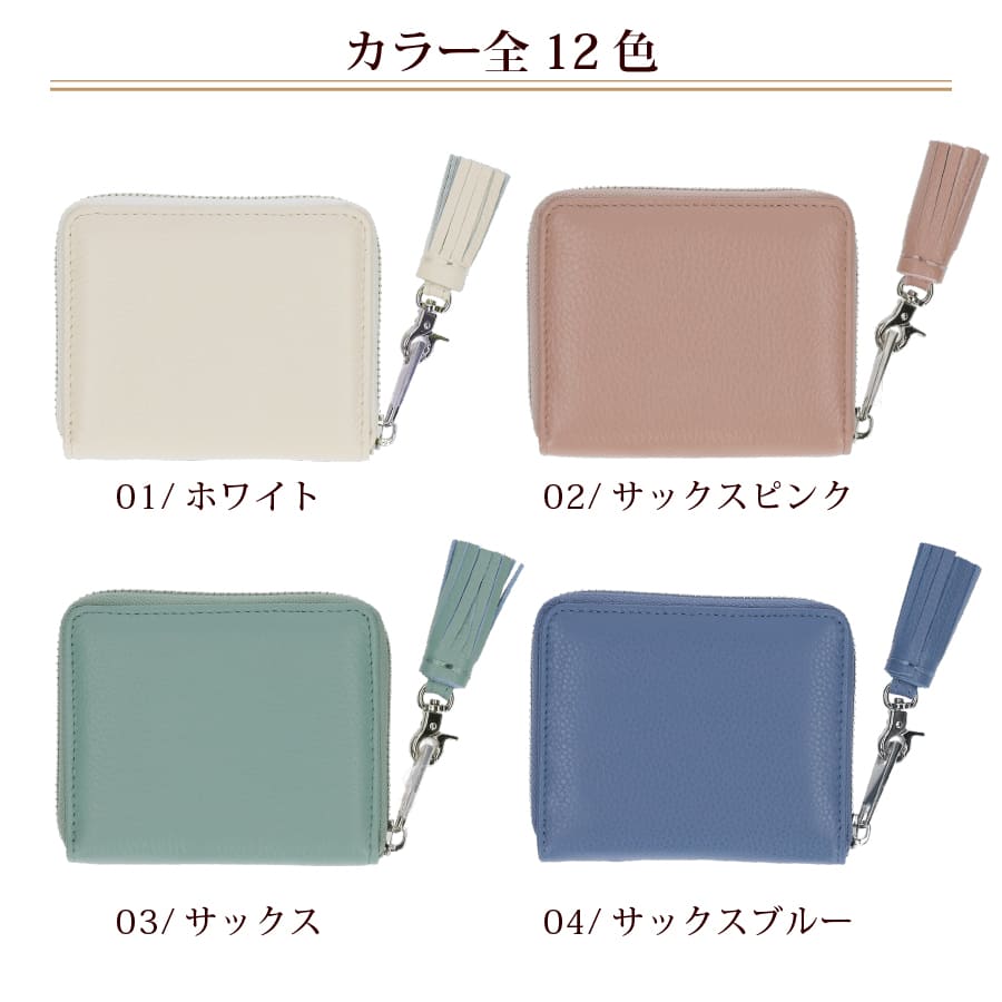 【母の日ラッピング無料】 BEAURE/ビュレ 牛革 二つ折り財布 日本製 本革 ラウンドファスナー タッセル付き レディース [全12色] [BS30062]レザー 女性 財布 コンパクト財布 ギフト シルバー ゴールド イエロー グリーン グレージュ ピンク ブルー ブラック