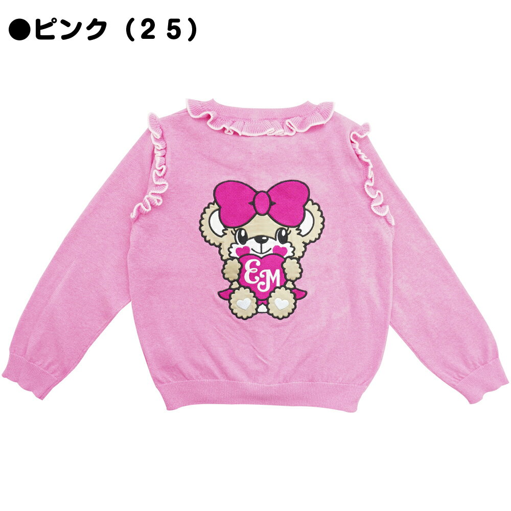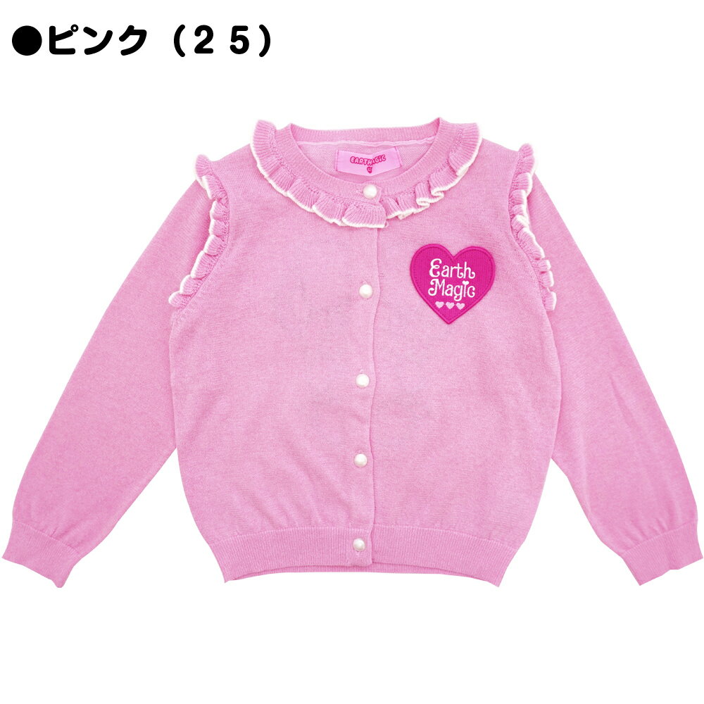 2021年 EARTH MAGIC(アースマジック)春夏新作 ♥ニットカーディガン♥ パイピング風縁取りフリルに背中はビッグマフィーちゃんアップリケ★